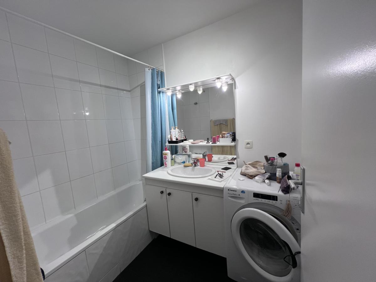 Il comprend : une entrée avec placard, un séjour avec balcon, une cuisine aménagée et équipée avec plaques de cuisson, frigo avec congélateur, four et lave-vaisselle, une chambre avec placards, une salle de bains avec lave-linge, wc séparés.